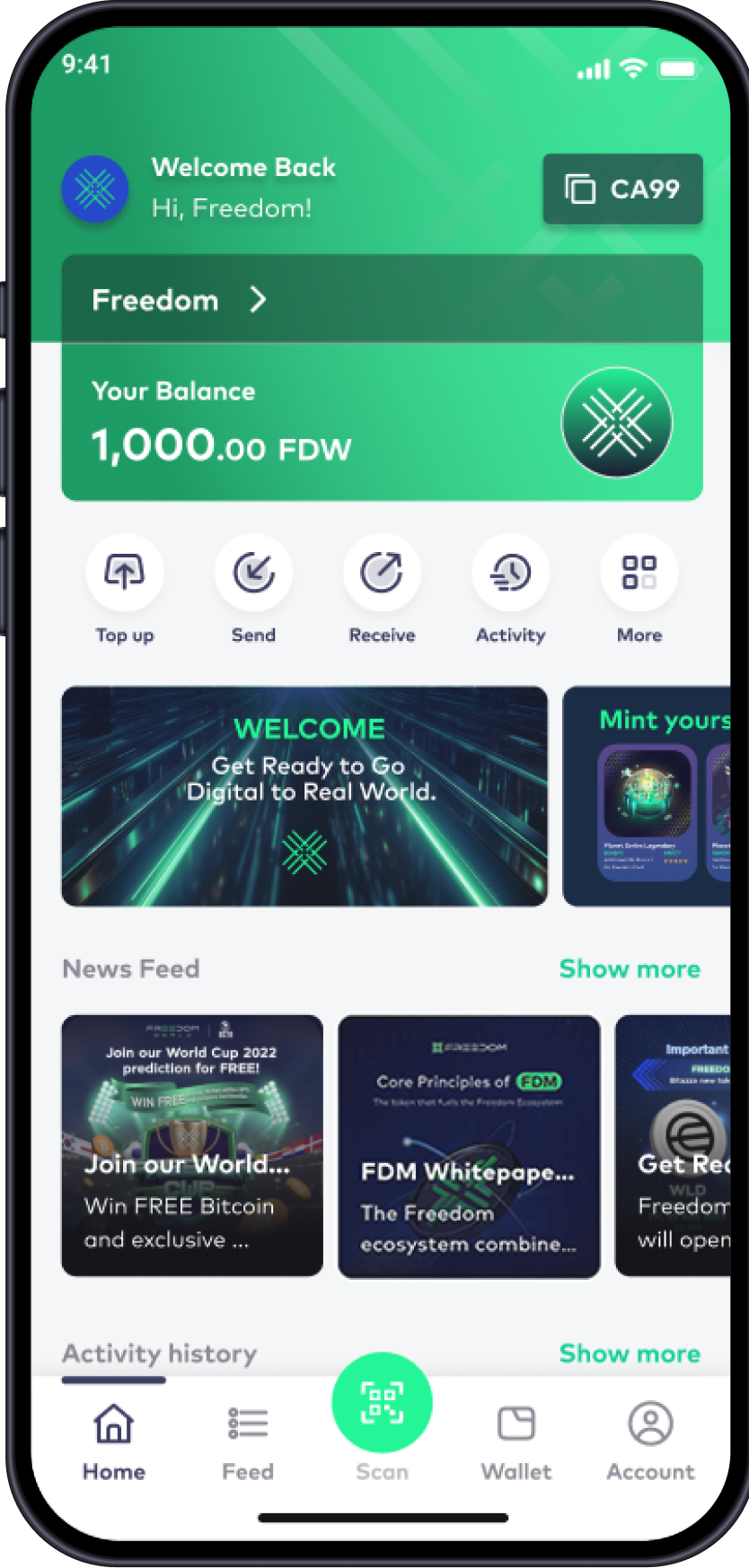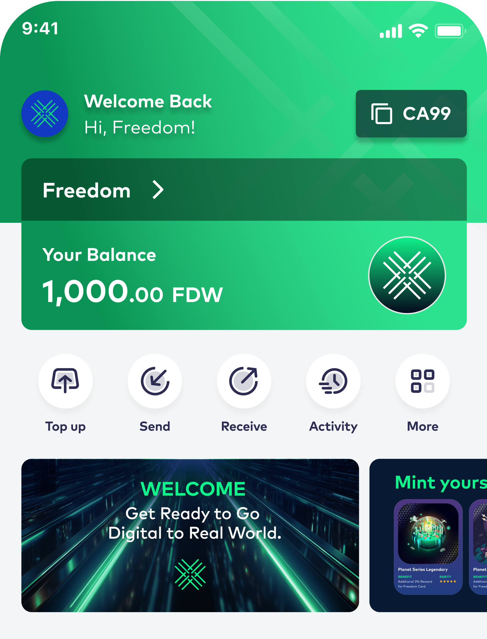 Freedom World is a platform that empowers businesses and individuals to build communities with a universal reward system, loyalty program, and comprehensive marketing and communications tool for engagement, retention, acquisition and many more. Freedom World is available on Mobile Application with a Desktop console to manage the community.
