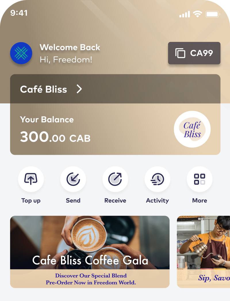 The one-of-a-kind digital assets-themed cafe located in Bangkok. Sobtacafe, partnered with Freedom World to enable customers to easily top-up their accounts using STC Points. This not only created direct engagement with customers via in-app communication, but also enabled the business to receive advanced cash flow. They also issued their own digital assets, which allows holders to receive benefits and privileges within the Sobtacafe ecosystem.